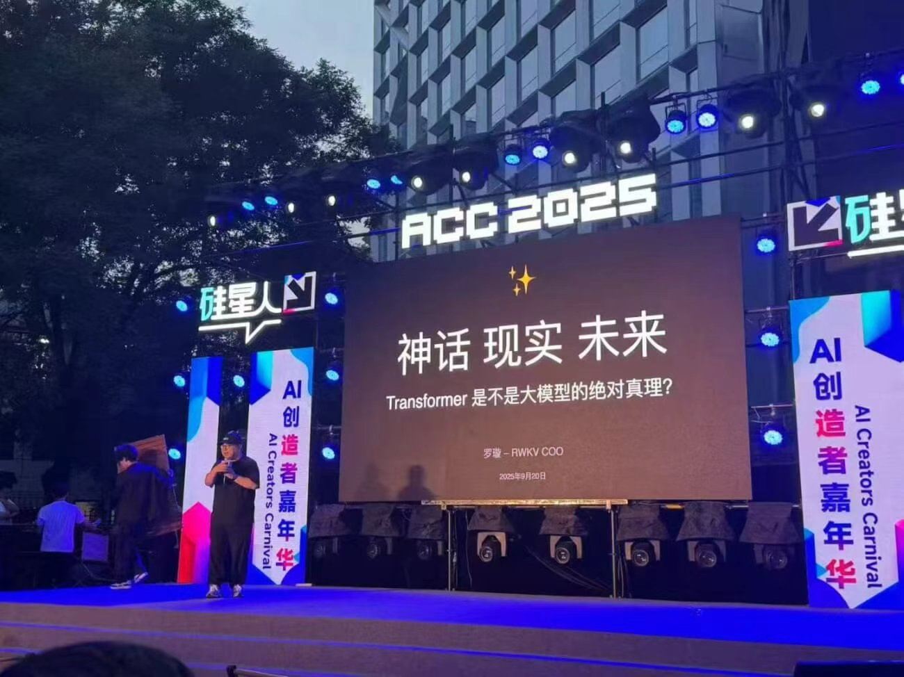 2025 年 9 月 20 日,RWKV 团队参加 ACC 2025 AI 创造者嘉年华,介绍了 RWKV 最新进展和未来趋势。