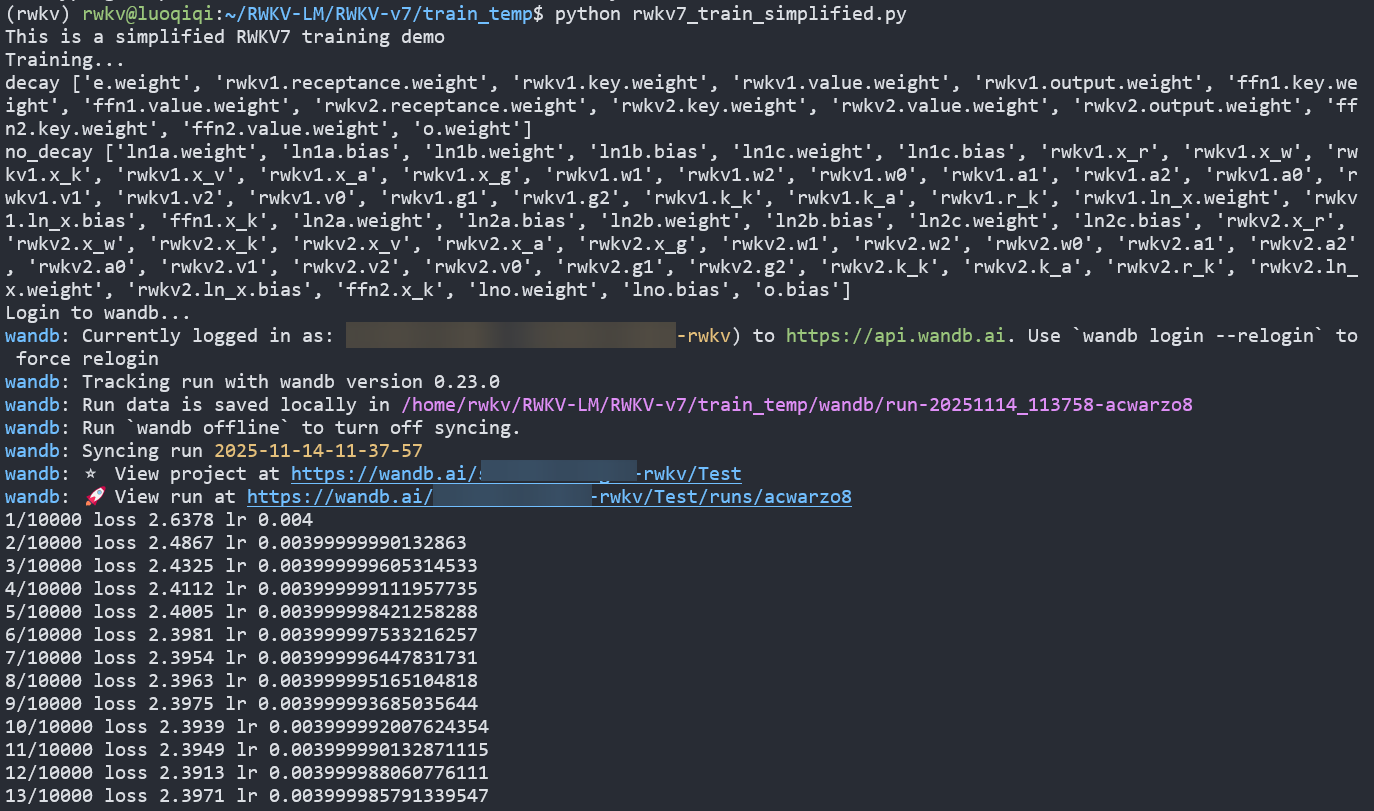 我们发布了 rwkv7_train_simplified.py ,演示 RWKV-7 “Goose” 架构的训练全过程,无需任何外部训练框架。